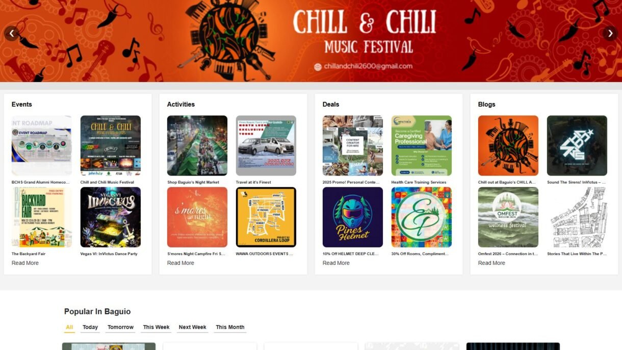 I developed a dynamic web platform that connects residents and visitors to Baguio City’s vibrant local culture. The site features event listings, local business promotions, job boards, and curated content highlighting arts, music, and cultural experiences. My role focused on creating an intuitive, mobile-friendly interface and building modular listing systems that allow easy content management. The platform empowers small businesses, engages the community, and showcases Baguio’s unique identity, making it a go-to hub for locals and tourists alike.
